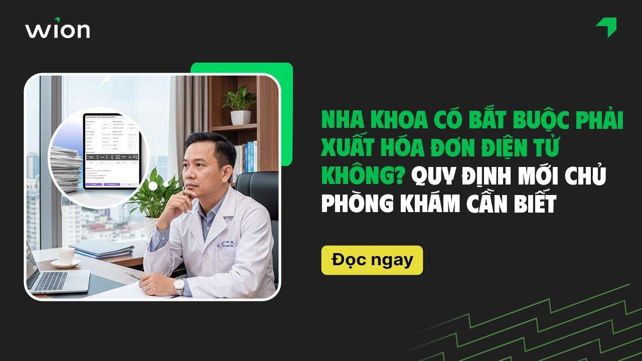 Từ khi các quy định về hóa đơn điện tử được siết chặt, nhiều chủ phòng khám nha khoa bắt đầu lo lắng: Không xuất hóa đơn có bị phạt không? Nha khoa có bắt buộc phải xuất hóa đơn điện tử? Dịch vụ nha khoa có chịu thuế không? Phòng khám nhỏ có bắt buộc áp dụng không? Bài viết dưới đây Wi Team tổng hợp và giải thích đơn giản, dễ hiểu, dễ áp dụng các quy định liên quan đến hóa đơn điện tử trong lĩnh vực nha khoa, giúp chủ phòng khám làm đúng ngay từ đầu và yên tâm vận hành lâu dài.